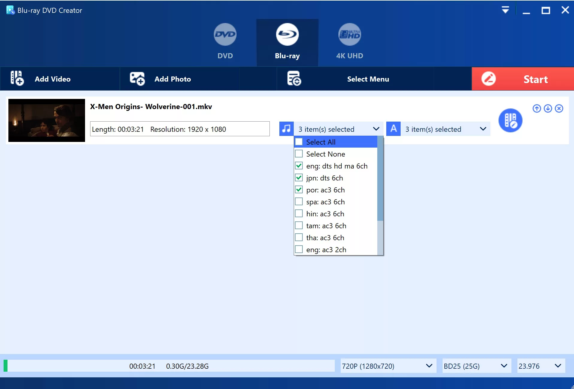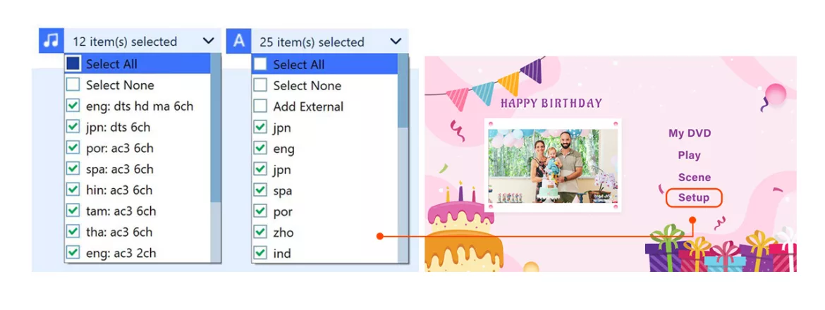 - With Yuhan Blu-ray DVD Creator, you can conveniently set the language of your audio track and subtitle language, which will be displayed on the DVD menu for easy navigation. This feature ensures that your audience can easily access and enjoy your content.